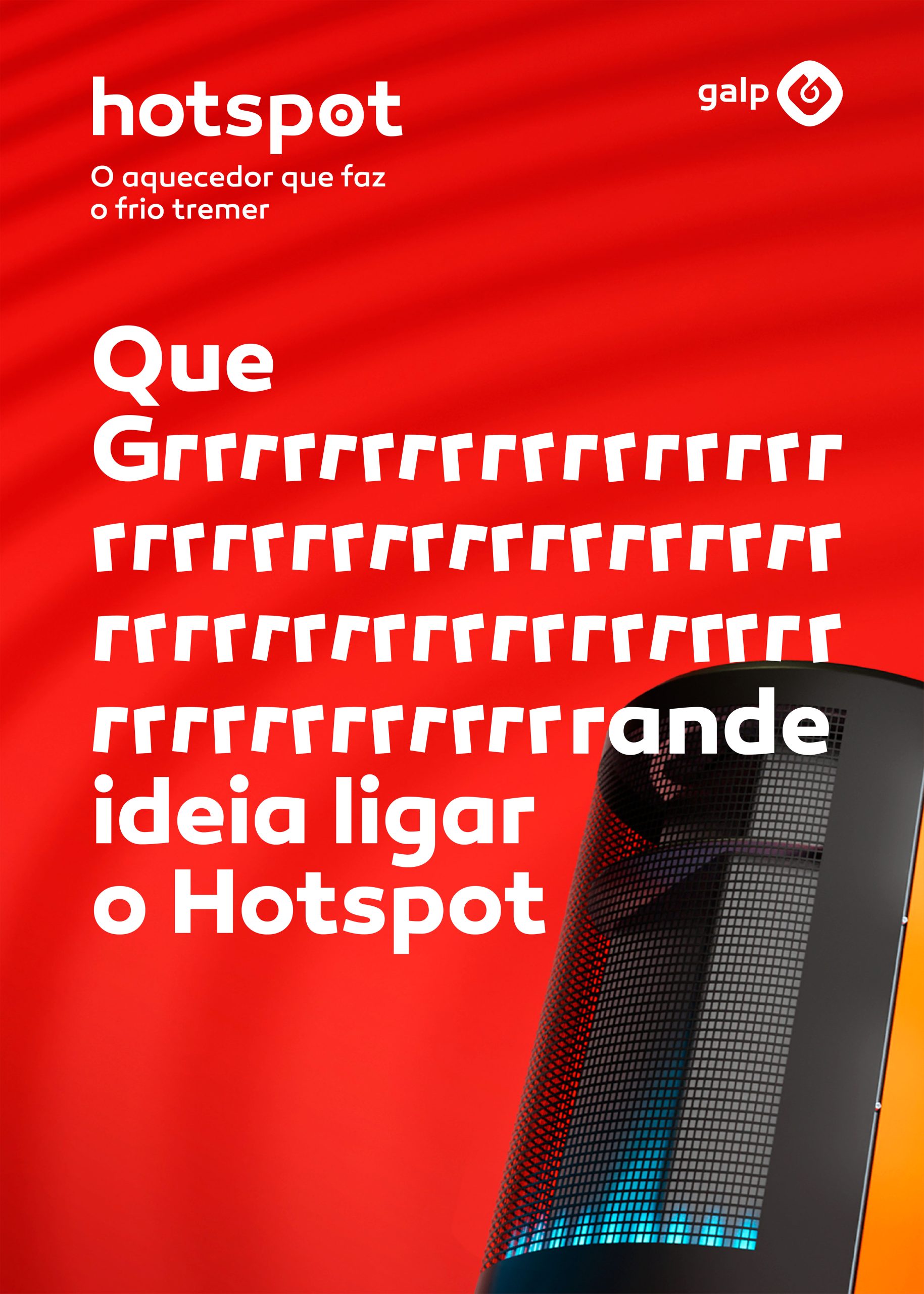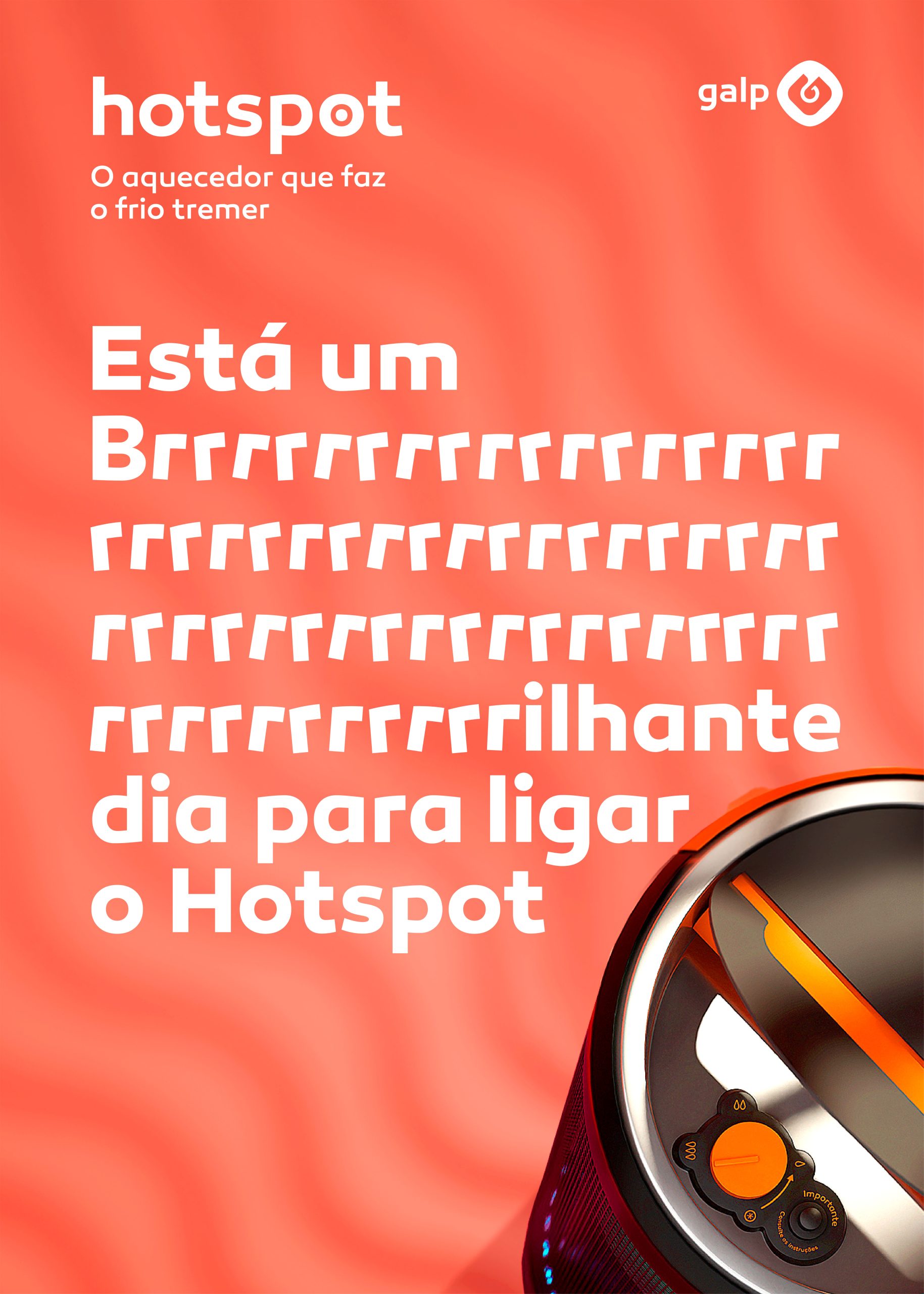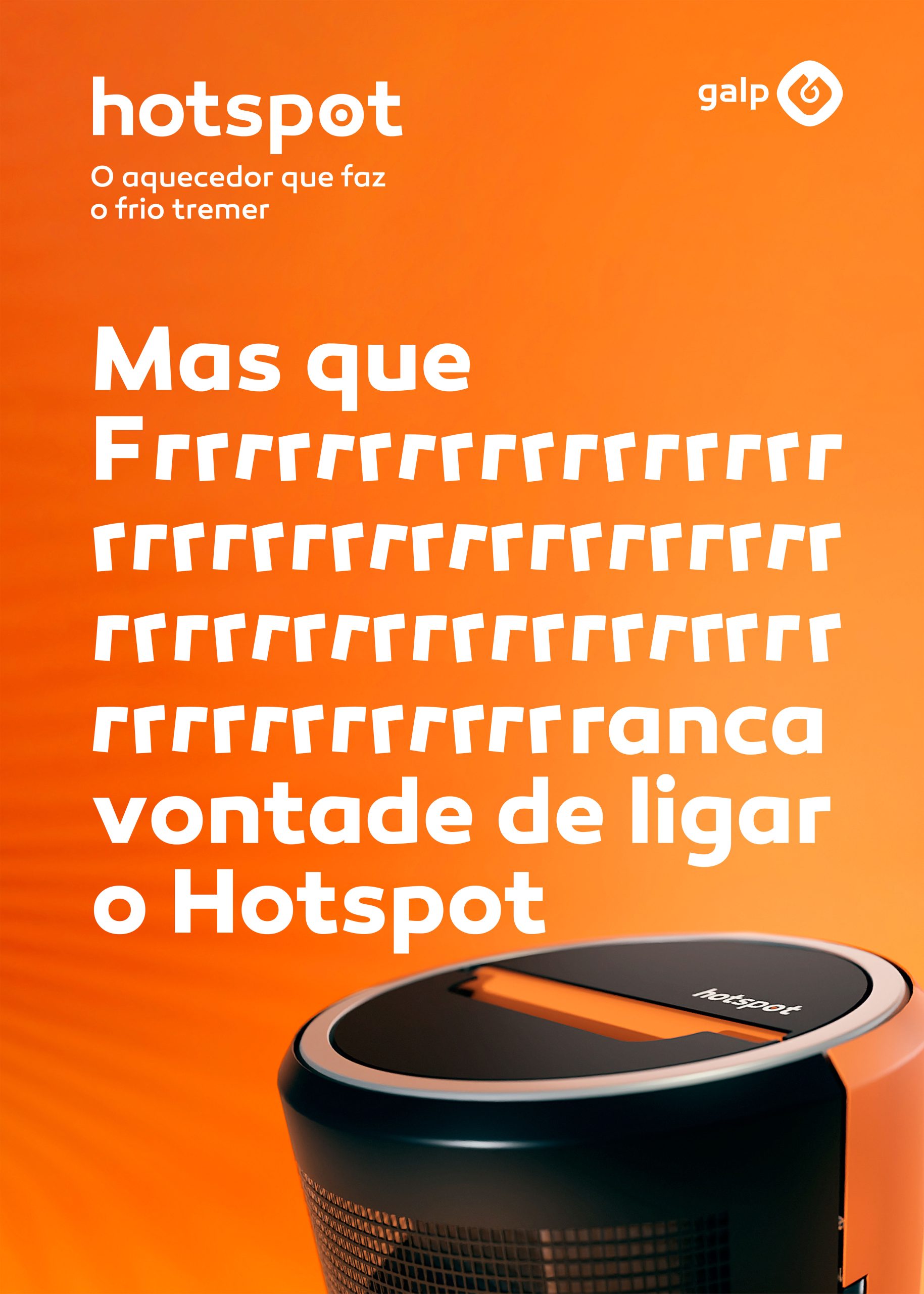 We used the onomatopoeic sounds from teeth chattering to craft distinctive copy that would stand out from the competition. The outcome is a visually striking campaign positioning Galp’s Hotspot as the “Heater that makes the cold shiver”.