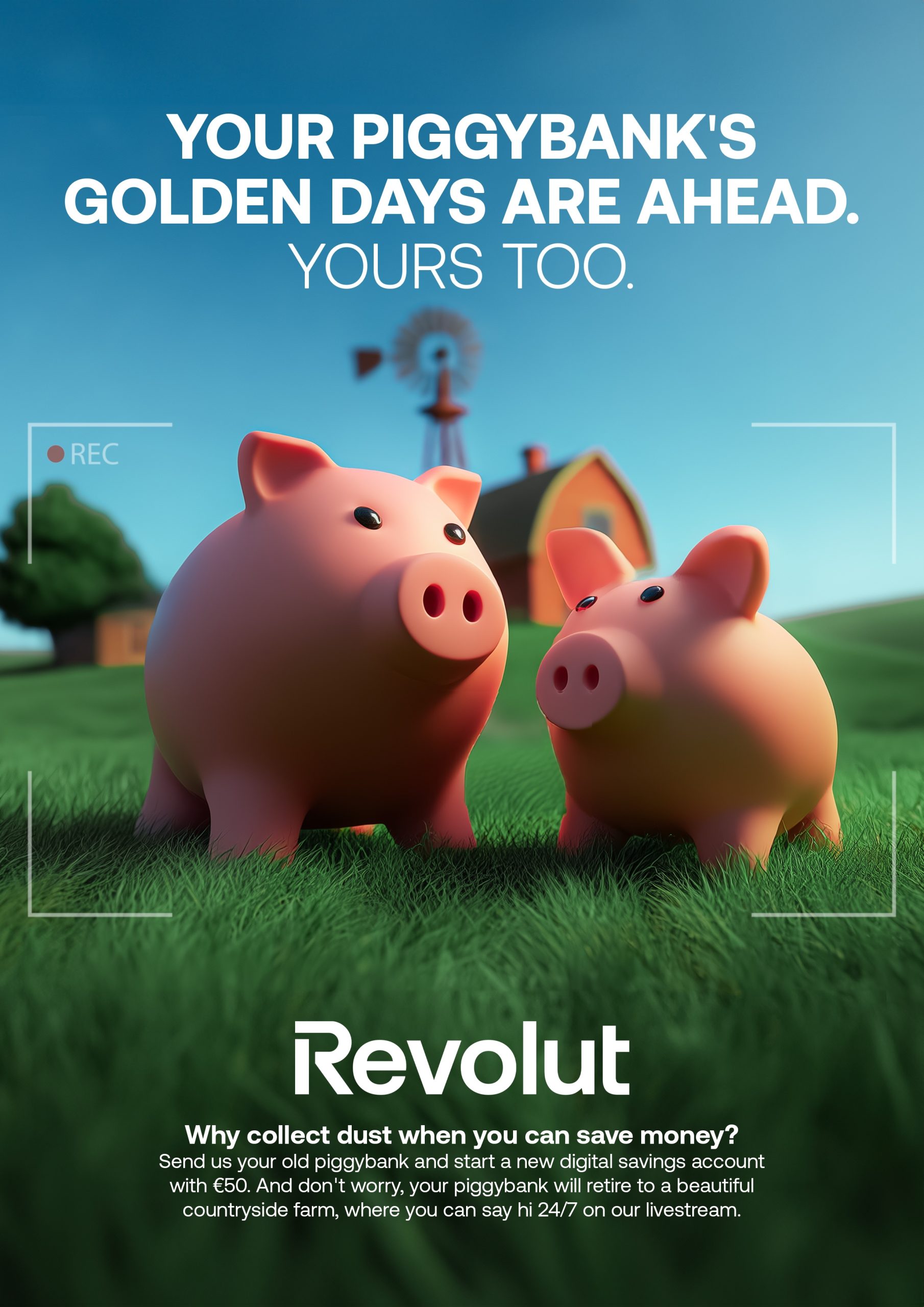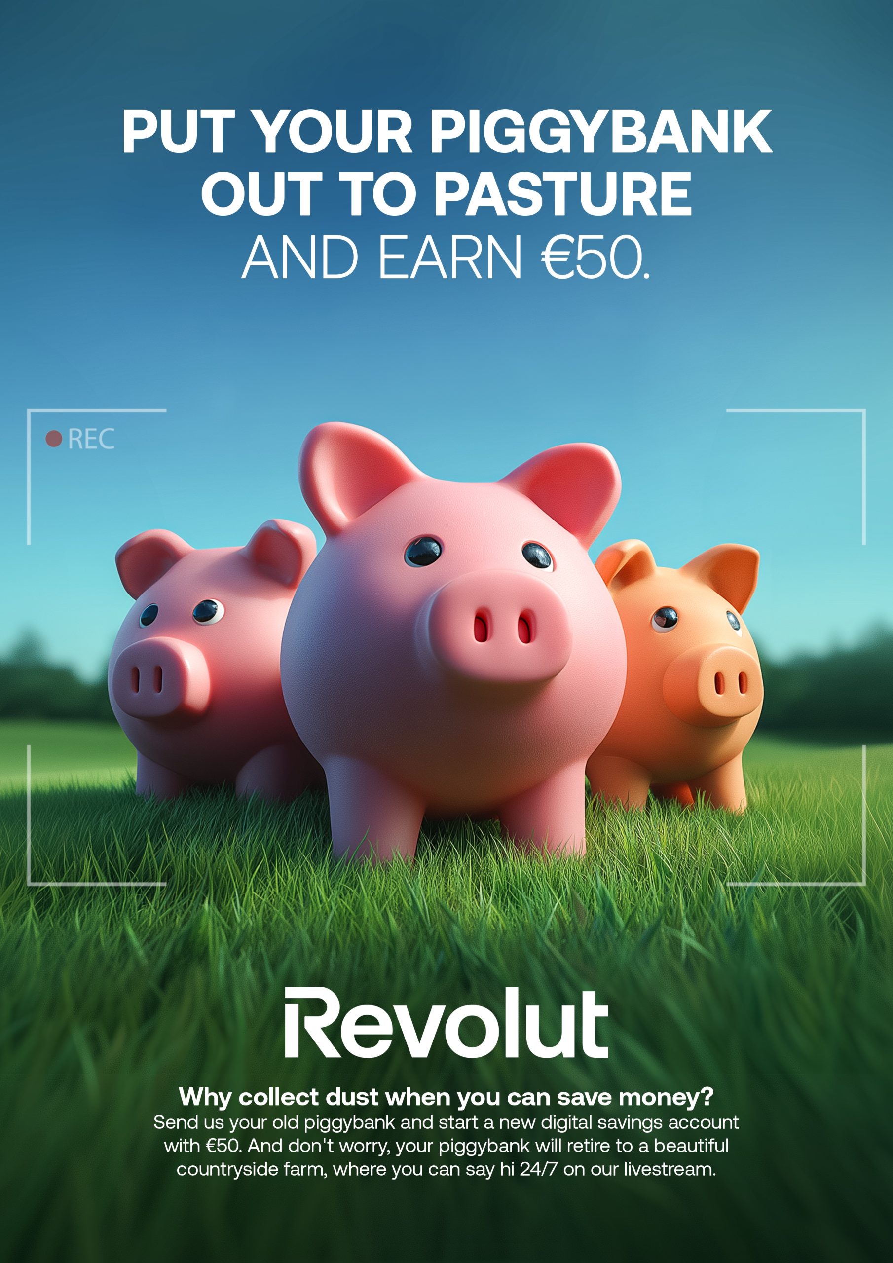 We asked people to let go. By sending us their old piggybanks, they received €50 to start saving with Revolut. And their emotional attachment? They can keep it alive via livestream, as we're retiring their piggybanks to a real farm where they can check in whenever they want.