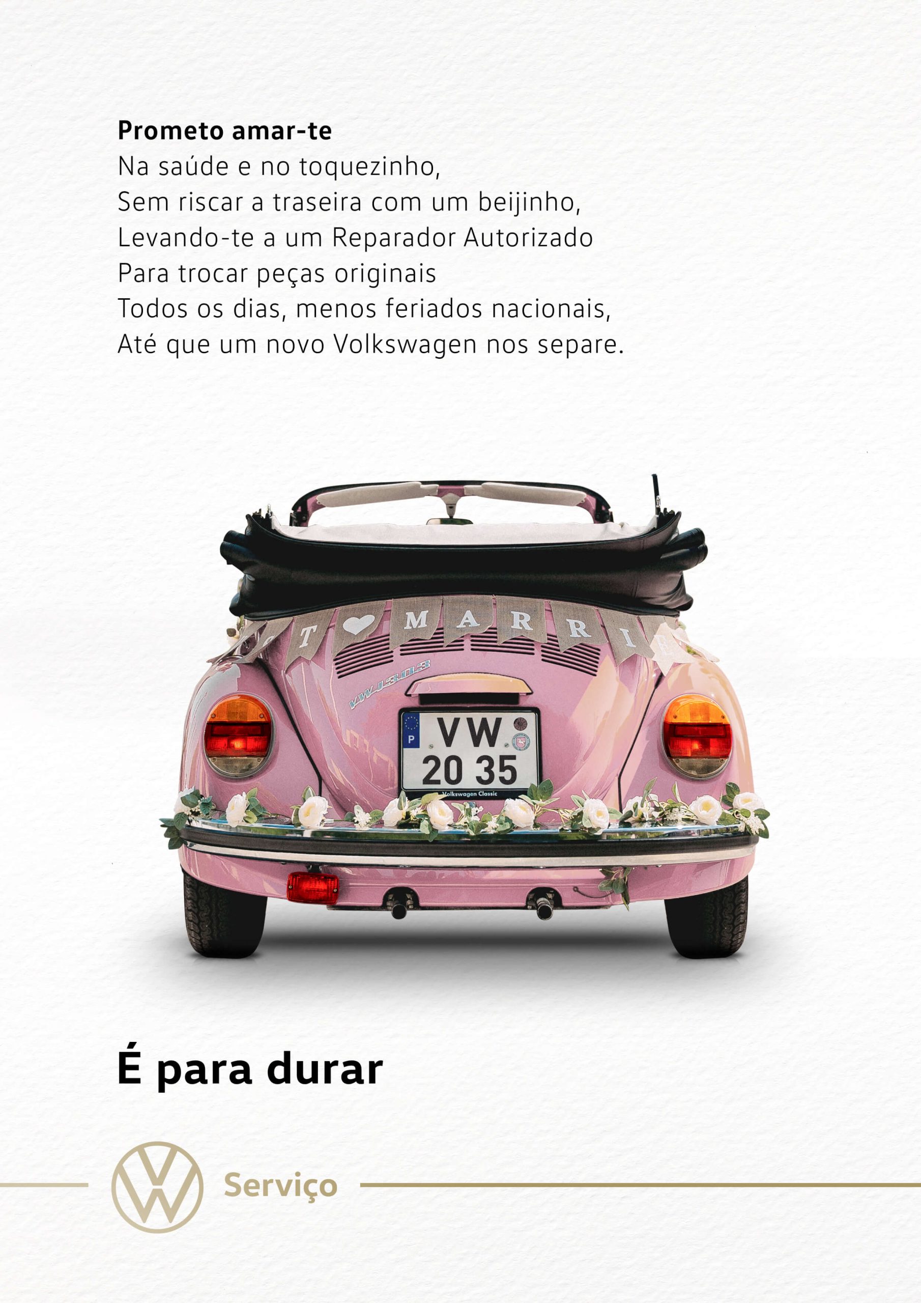 A lot of newlyweds use the Volkswagen Beetle or Kombi to leave the church after a wedding. Why? Because Volkswagen has become a symbol of longevity and fidelity, two traits of a good marriage. Leveraging this connection we can instill some brand love and loyalty in Volkswagen Service.