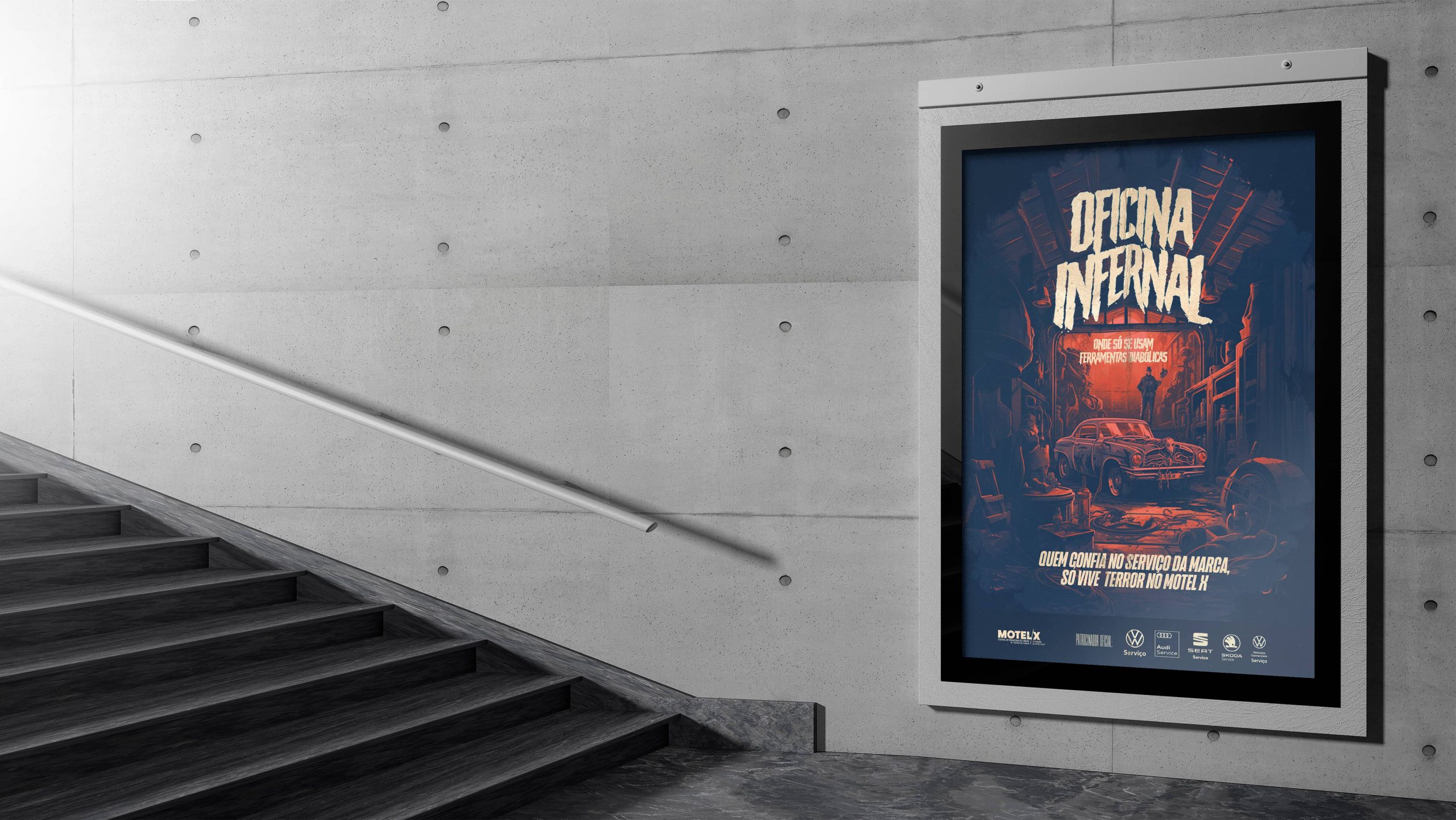 Volkswagen & SEAT Service decided to sponsor Motel X, Lisbon’s Horror Film Festival. Inspired by this, we created a campaign that highlighted the unsettling feeling of choosing independent repair shops. By portraying them as scenes from a horror movie, the campaign emphasized the peace of mind and reliability offered by Volkswagen & SEAT Service, ensuring a drama-free experience.